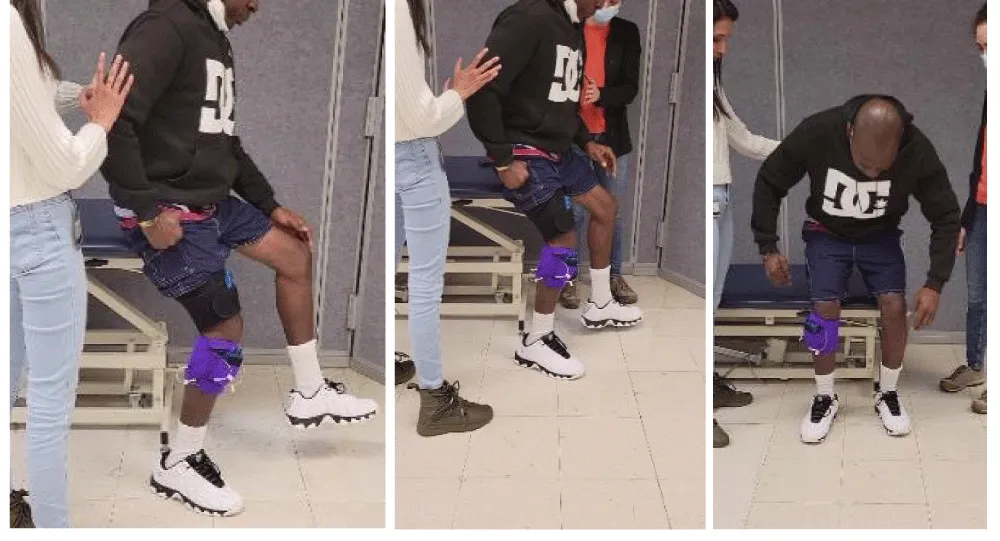 One caveat is the diminished loading on the paretic lower extremity while standing up and sitting down [6]. To enable more loading on the paretic side, the training is modified to limit the loading on the non-paretic limb as illustrated in Figure 2. In addition to having a motorised plinth/treatment table only in a clinical setting, the main disadvantage is the required clinician’s supervision to ensure the safety of the patient, which confines the training to a clinical setting, thus adding to the cost of care.
